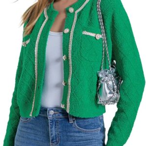 Women Cardigan Sweaters Casual Long Sleeve Open Front Cropped Jackets Button Down Knit Outerwear